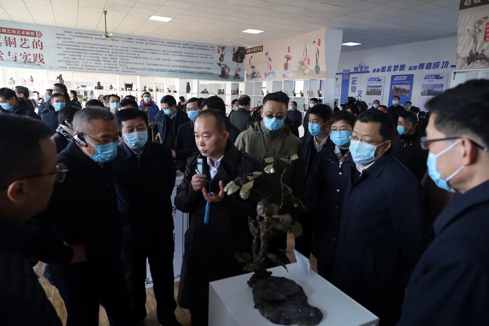 1月12日下午,中共銅陵市委十屆十四次全體(擴大)會議期間,市委書記丁純,市委副書記、市長胡啟生及各市直部門、開發(fā)園區(qū)和縣區(qū)主要負責人等近百人,現(xiàn)場觀摩銅官府銅藝產(chǎn)業(yè)園。全體委員還集中參觀了全國景泰藍職業(yè)技能競賽參加決賽選手作品以及趙敏的寫真銅藝作品等。